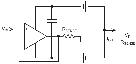 Figure 8. This is the simplest possible realization of this current output circuit although it trades off for lower output impedance and restricted output compliance range. Furthermore, it will have to be verified with the op amp of your choice as some op amps may