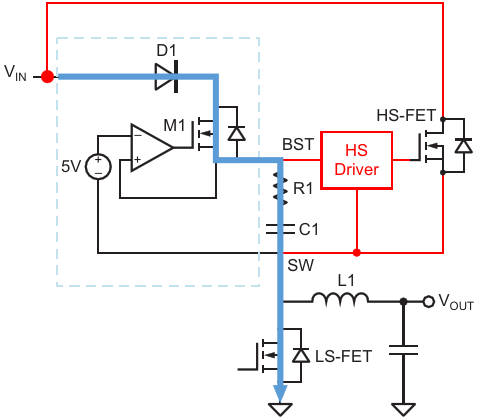Figure 2. Using a charge pump for an HS-FET