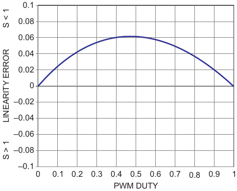 Linearity error versus PWM duty where S = 0.78 creates ~6% of integral nonlinearity