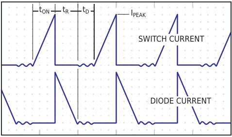 These curves show the switch and diode currents in the circuit of Figure 1
