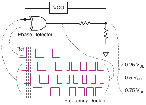 An XOR gate, voltage-controlled oscillator, and a few passive components make a frequency doubler