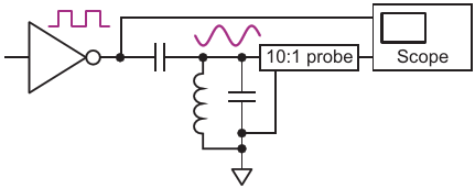 Figure 7. A series of logic edges at a sub-harmonic of the tank resonant frequency will cause it to ring