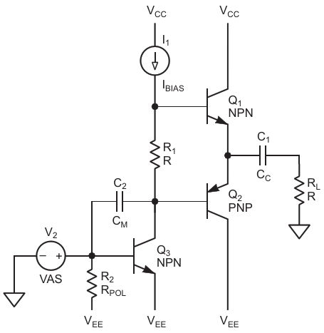 Figure 4. This simplified model of a VAS and driver will provide us with valuable insights about the output DC offset