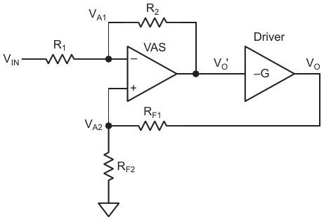 Figure 4. This simplified model of a VAS and driver will provide us with valuable insights about the output DC offset