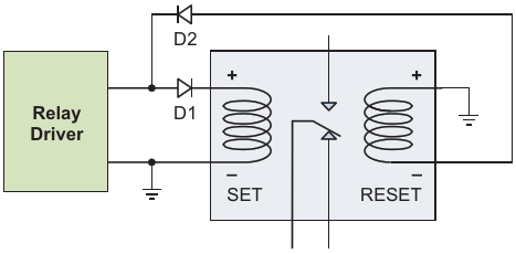 Figure 1. Diodes convert a single-coil relay driver to dual-coil use