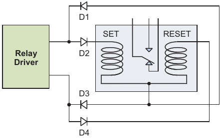 Figure 1. Diodes convert a single-coil relay driver to dual-coil use