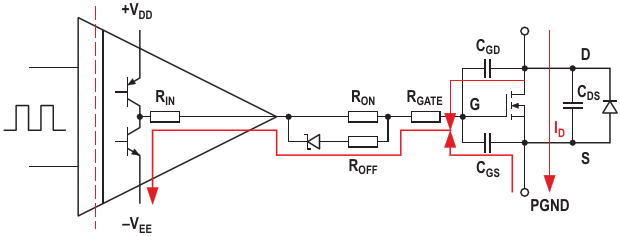 Figure 3:. High ΔI/Δt current paths on turn-OFF of SiC/GaN FET