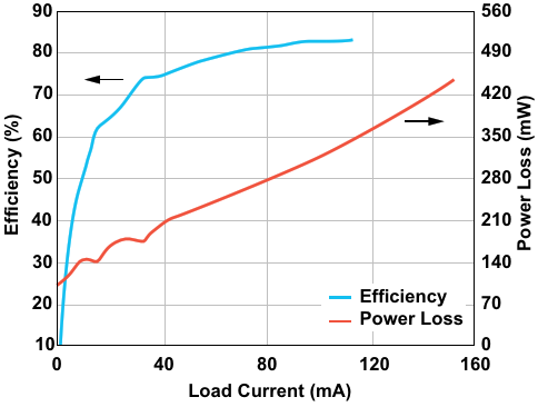 Figure 6. The power loss curve shows the efficiency of a nonsynchronous, dual-inductor inverting output DC/DC converter