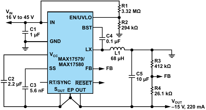 Figure 7. Highly integrated, most efficient negative output DC/DC converter