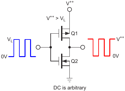 The simplest case of logic signal totem pole drive - direct connection works if V