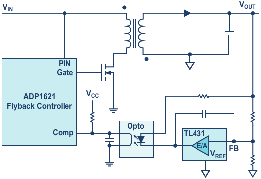 Figure 1. Conventional flyback controller with feedback path based on an optocoupler