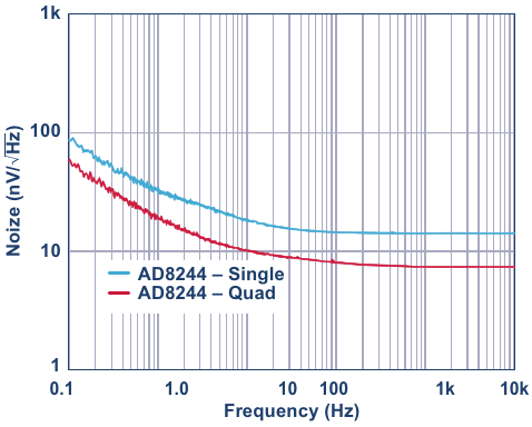 Figure 2. The performance of the new AD8244 buffer: noise is ½ of normal buffer