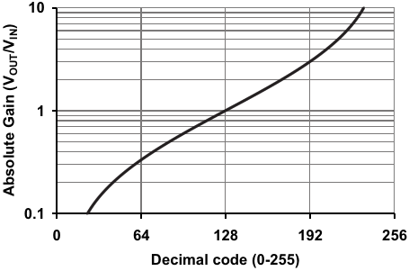 Figure 2. Pseudologarithmic gain goes off the chart for codes below 24 and above 232