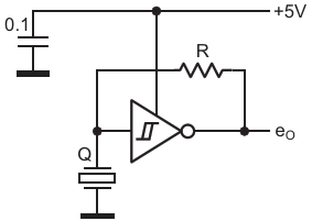 Figure 1. A simple circuit that produces an almost square wave odd-integer of quartz harmonics