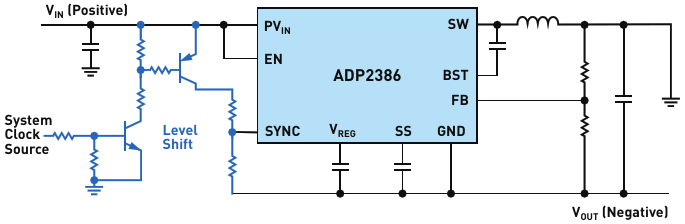 Figure 2. External level shifter for supplying the switching regulator IC with an external clock for synchronization