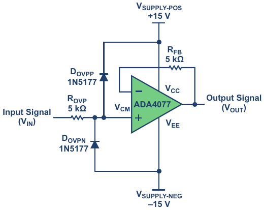 Figure 4. ADA4177 input bias current is restricted as overvoltage increases