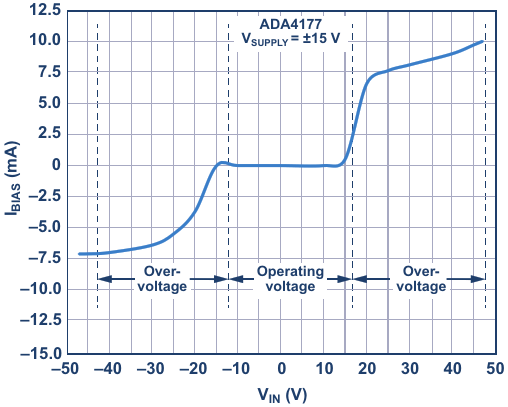 ADA4177 input bias current is restricted as overvoltage increases