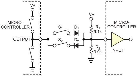 Figure 3. You can use this circuit to reduce the number of inputs coding the switches