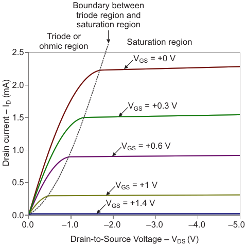 Figure 5. See P-channel JFET characteristic curve highlighting ohmic and saturation regions
