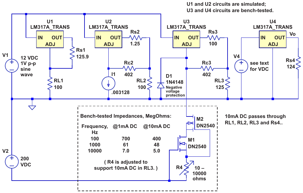 A series of LM317 circuits investigated in simulation and on the test bench for suitability as a current source
