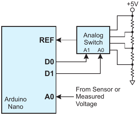 Figure 4. Using an external DAC (MAX5362) controlled by the Arduino Nano to provide more reference levels