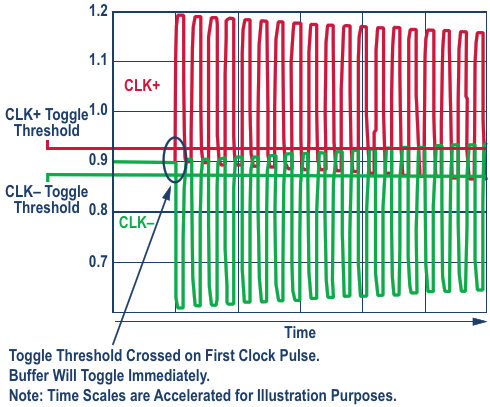 Figure 2. Startup with CLK+ swinging negative on the first edge and CLK- swinging positive