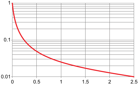 Figure 3. A normalized Early effect (y-axis) versus emitter degeneration voltage VE = IA×R (x-axis). Note that just 50 mV reduces Early by 3:1. That's indeed a "long way"!