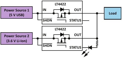 Figure 2. Two ideal diodes provide higher efficiency and enable additional functions