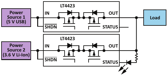 Figure 2. Two ideal diodes provide higher efficiency and enable additional functions