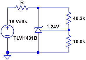 Figure 6. The test jig for TLVH431B spectral noise. There was no significant difference in the results shown in Figure 7 when values of 1 kΩ and 10 kΩ were used for R. 100 kΩ and 1 MΩ resistances supplied insufficient currents for the devices' operation