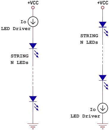 Figure 2. High-side and low-side operating configurations enabled by the fully floating nature of the LED driver