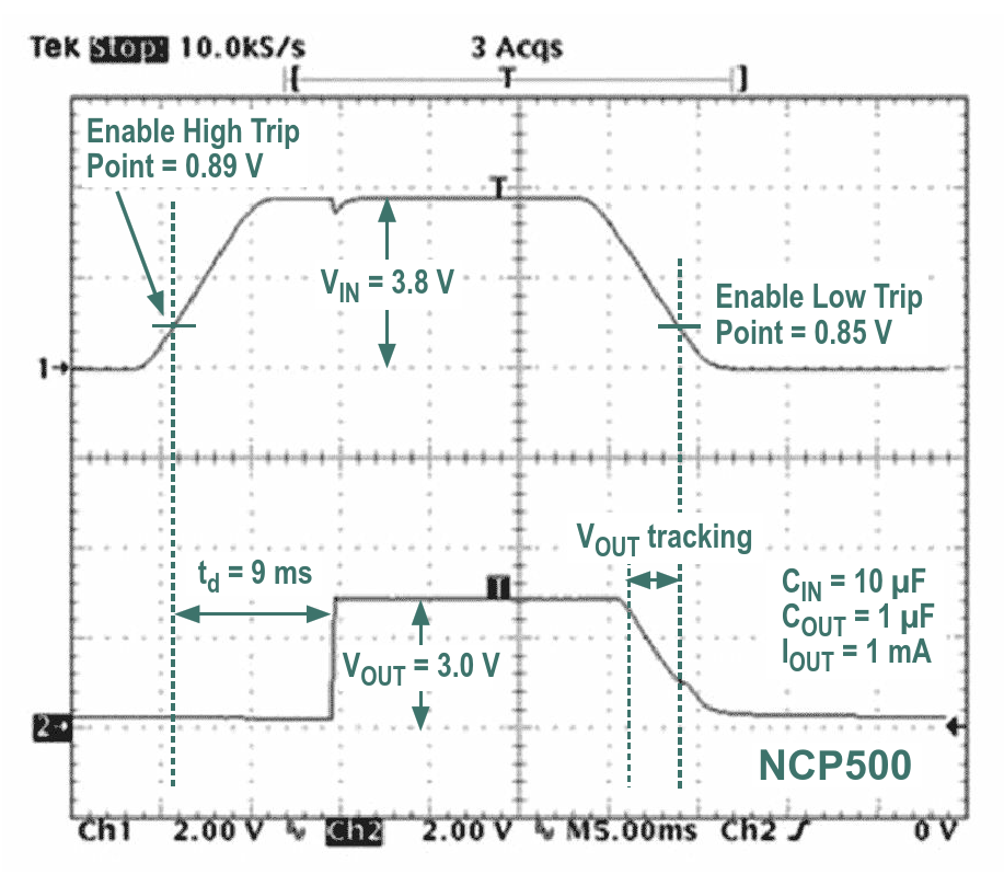 The added components in Figure 2 eliminate the problem of rising-edge output-voltage tracking. However, the falling-edge output voltage still tracks the input voltage