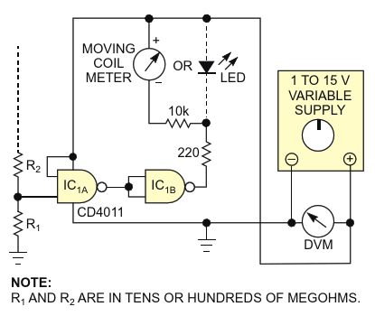 Logic gates form high-impedance voltmeter