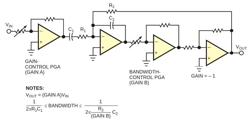 Figure 1. This ac-amplifier configuration offers both gain and bandwidth control