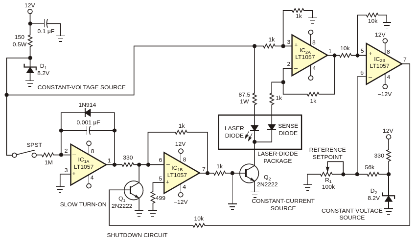 Constant voltage and current and slow turn-on time are the keys to laser diodes' survival
