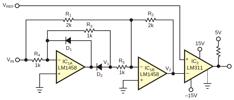 Figure 1. This traditional window-comparator circuit suffers from limited input range