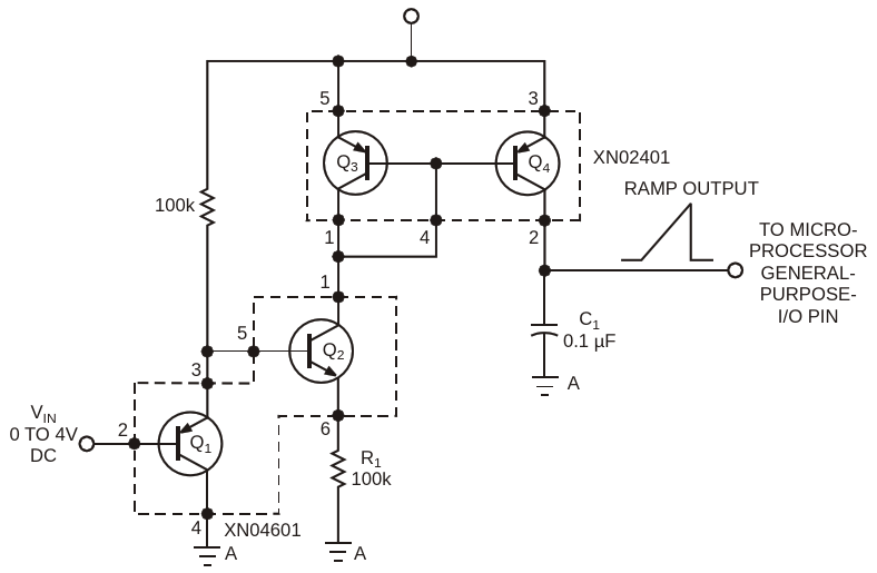 With two transistor arrays and three discrete components, you can configure an analog front end for a microcontroller