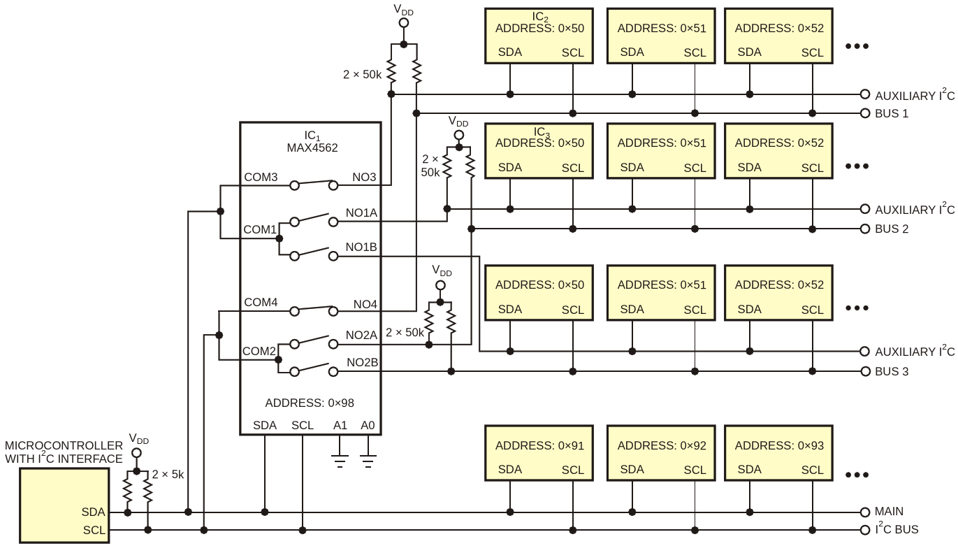 C-controlled analog switch expands by three the number of devices connected to the bus