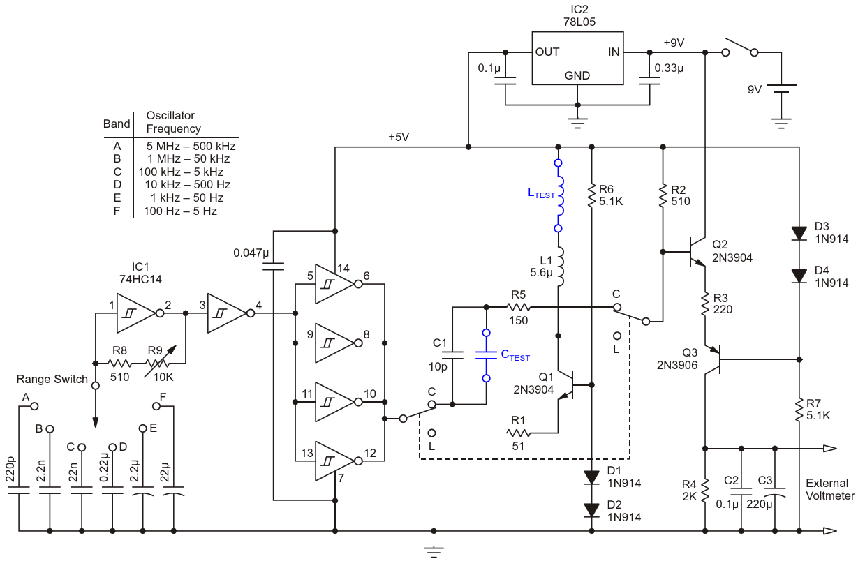 Figure 1. Basic scheme for measuring capacitors (a) and inductors (b) with variable frequency square waves