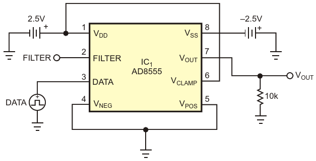 Figure 1. Occupying a tiny, eight-lead LFCSP footprint, a programmable instrumentation amplifier doubles as a last-minute adjustable-voltage bipolar-reference source