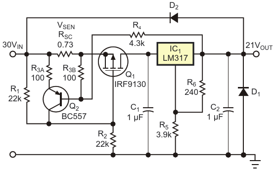 This circuit adds foldback-overcurrent …