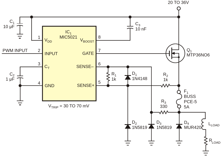 Figure 1. A fuse does double duty as a protection device and a current-sensing resistor