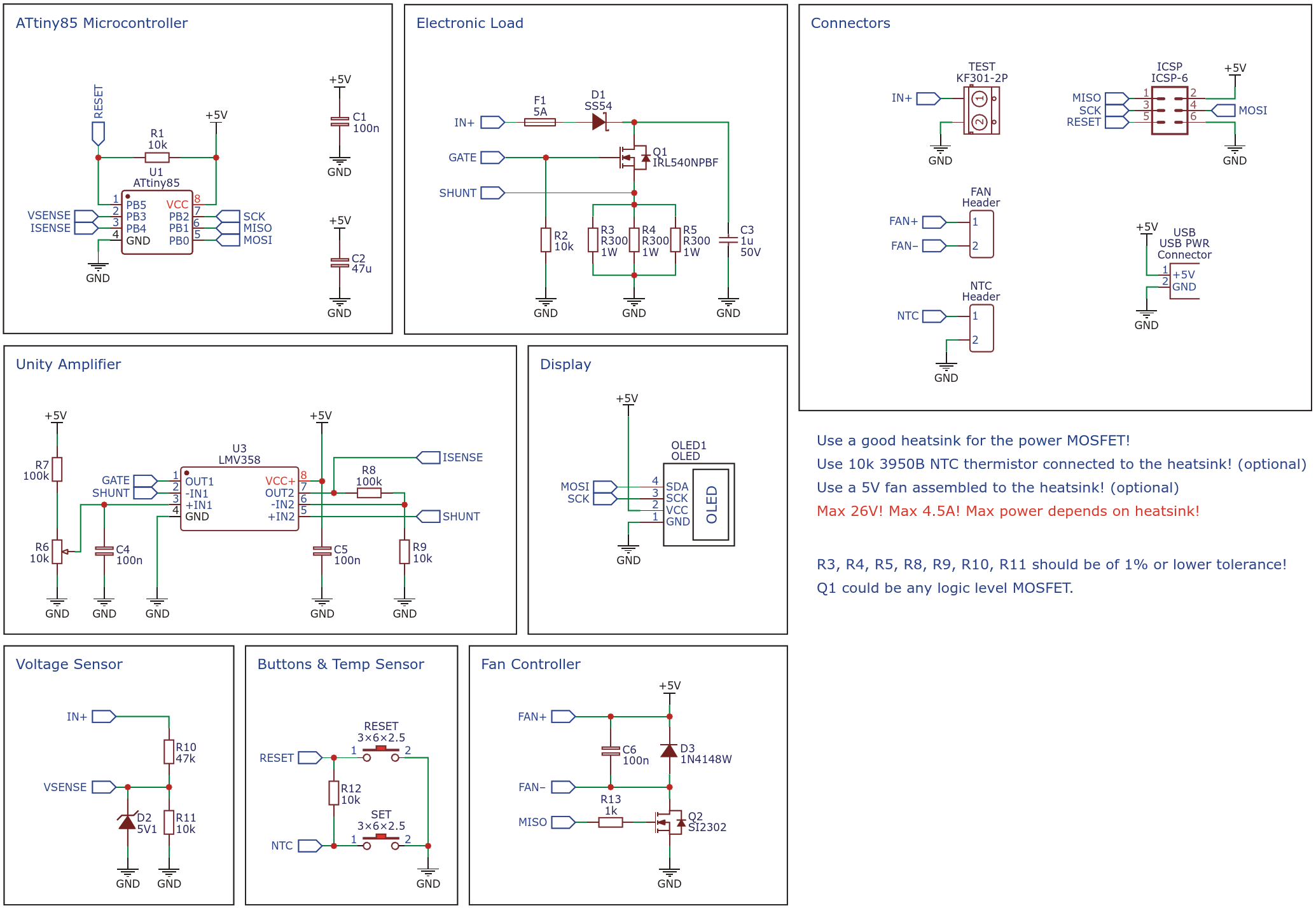 Figure 3. Simple Electronic Load based on ATtiny45/85 Schematic Diagram