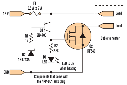 Built inside a standard automotive plug, this circuit turns off power to a thermoelectric cooler when the car's battery voltage falls below 12 V