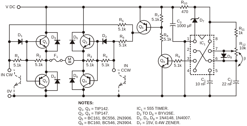 Figure 1. You can set a motor's rotational direction and speed using this simple circuit