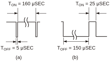 Figure 2. The position of the wiper on the speed-control potentiometer determines the duty cycle of the chopper circuit. When it is fully down, β = 0 (a); when it is fully up, β = 1 (b)
