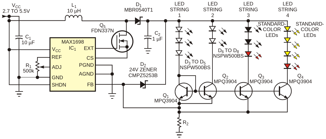 Circuit Drives Mixed Types and Quantities of LEDs