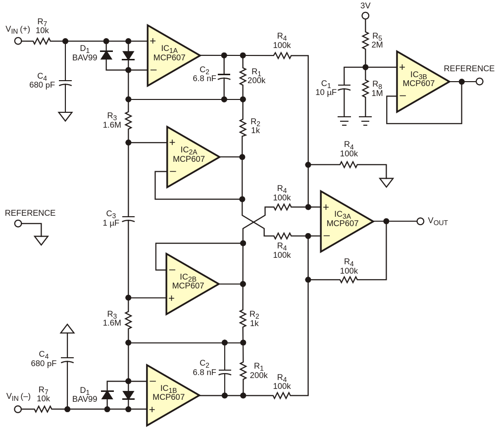 High-CMRR Instrumentation Amp Works with Low Supply Voltages