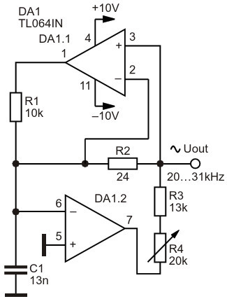 Figure 3. A variant of the sine-wave oscillator on the TL064IN chip