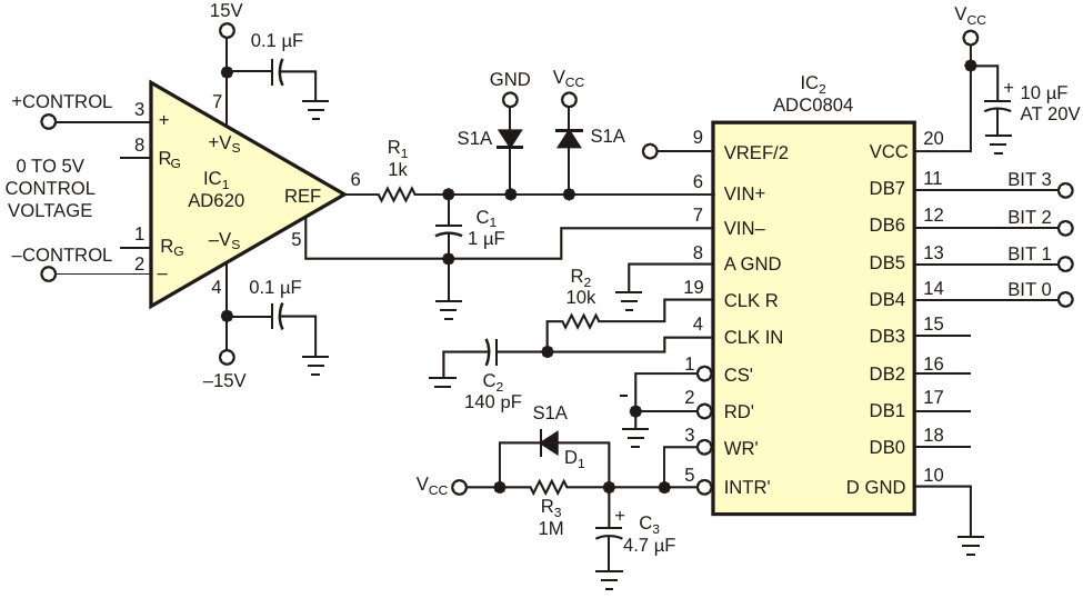 Figure 2. An ADC controls the gain-setting codes for the circuit in Figure 1